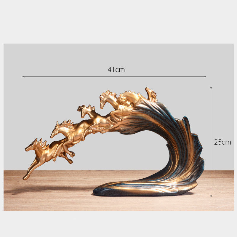 Crafted from premium resin with meticulous hand-gilding techniques, this striking pendant decoration captures the dynamic energy of galloping horses in exquisite detail. The artisanal finish elevates any space with sophisticated visual appeal. Each piece arrives ready to display, making it an ideal choice for collectors and design enthusiasts seeking statement-worthy decorative accents.