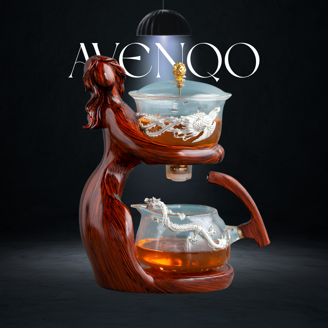 Elegant borosilicate glass tea set featuring a distinctive woman sculpture frame with removable cups and integrated stainless steel filters. Perfect for brewing loose-leaf, scented, or fruit teas. An ideal gift for tea enthusiasts seeking both functionality and refined aesthetics.