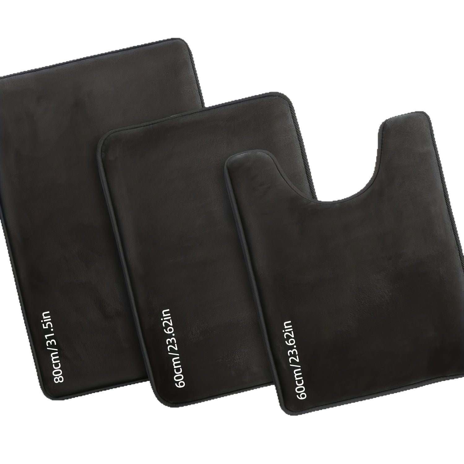 Energize your bathroom with the Three-piece Luxury Toilet Set. Made of high quality coral fleece, these solid color mats come in black, dark gray, light gray, and cyan. Keep them clean with a simple wash and enjoy the modern simplicity and style of these square shaped mats. Package includes 3 mats: U-shaped mat (50*60cm) and two square mats (40*60cm and 50*80cm).